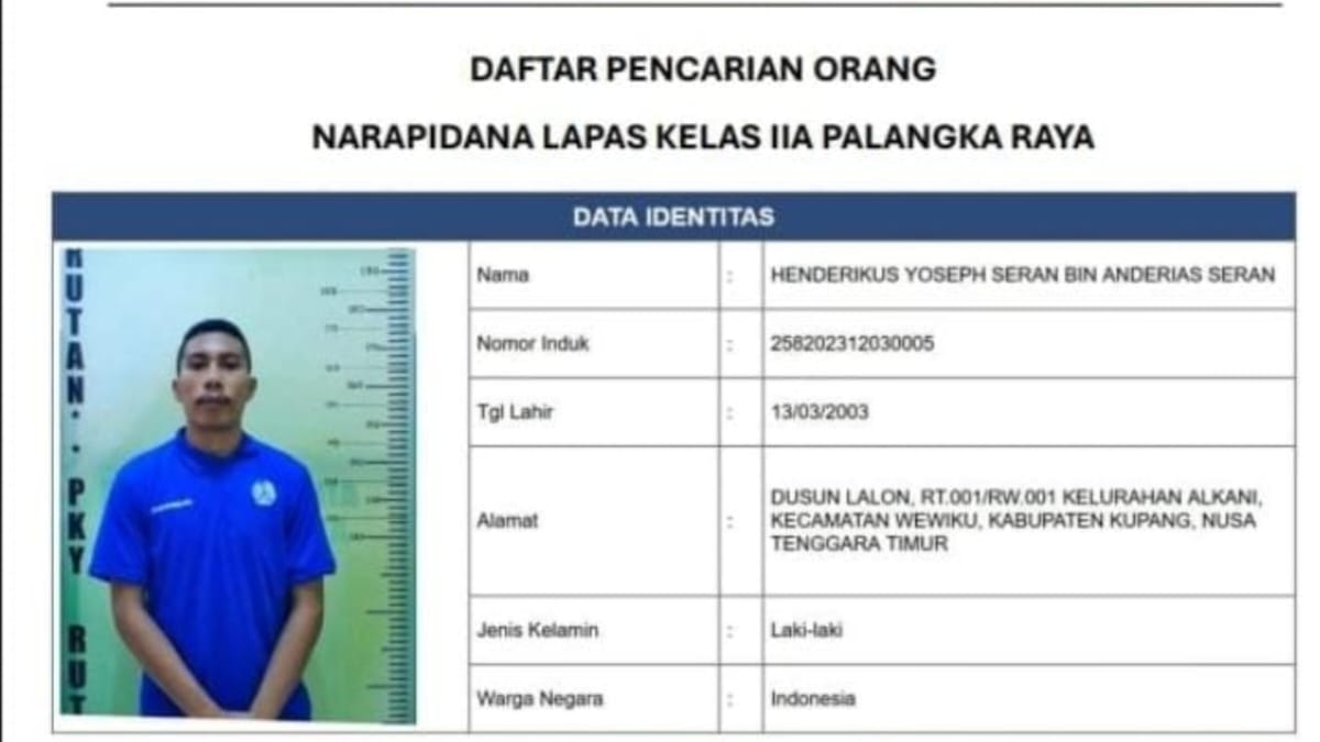 PALANGKA-NEWS.CO.ID, PALANGKA RAYA – Henderikus Yoseph Seran bin Anderias Seran memanfaatkan momen kerja bakti kebersihan untuk melarikan diri dari Lembaga Pemasyarakatan (Lapas) Kelas II A Palangka Raya. Aksinya terjadi pada Sabtu, 28 Juni 2025, pukul 12.57 Waktu Indonesia Barat.