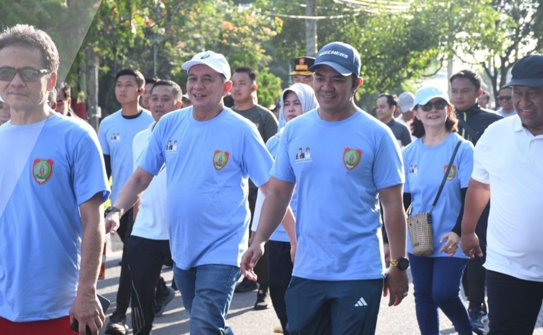 Bupati Pulang Pisau H. Ahmad Rifa’i mengikuti jalan sehat peringatan Hari Koperasi Nasional ke-78 di halaman Kantor Gubernur Kalteng.