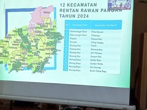 “Kami tidak menutup mata. Pemerintah provinsi tengah menyusun strategi cepat untuk mengintervensi wilayah-wilayah rawan ini melalui bantuan pangan darurat, penguatan cadangan pangan, dan program pemberdayaan berbasis pangan lokal,” ungkap Kepala Dinas Ketahanan Pangan Provinsi Kalteng, melalui paparan Kabid ketersediaan Pangan.