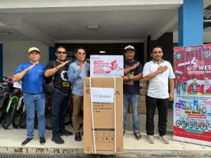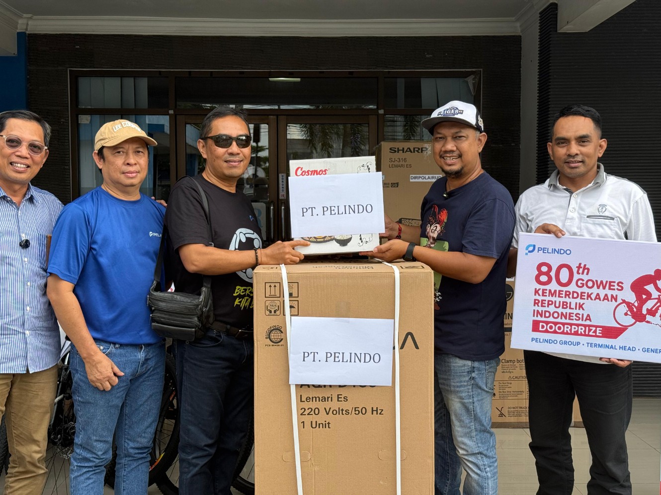 PALANGKA NEWS.CO.ID, SAMPIT — Pelindo Group Wilayah Sampit dan Bagendang berpartisipasi memeriahkan Hari Ulang Tahun (HUT) ke-80 Republik Indonesia dengan memberikan dukungan pada ajang Gowes Kemerdekaan yang digelar Radar Sampit. Dukungan tersebut berupa 1 (satu) unit kulkas dan 1 (satu) unit magicom sebagai hadiah doorprize bagi peserta.