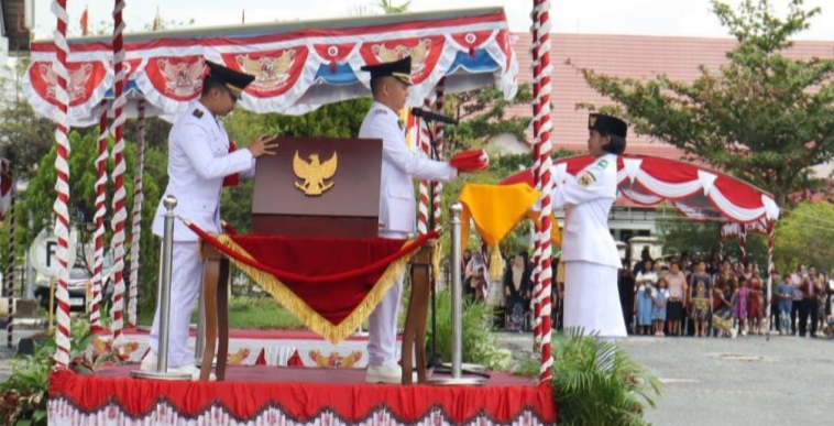 PALANGKA-NEWS.CO.ID, GUNUNG MAS – Prosesi pengibaran Sang Saka Merah Putih pada upacara peringatan HUT ke-80 Kemerdekaan Republik Indonesia di Kabupaten Gunung Mas berlangsung sukses. Pasukan Pengibar Bendera Pusaka (Paskibraka) yang bertugas dinilai tampil penuh tanggung jawab.