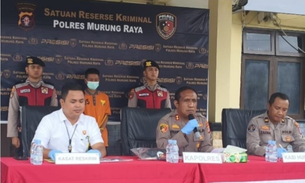 Kapolres Murung Raya, AKBP Frangky S Monathen, S.I.K., menjelaskan kronologi kejadian dalam konferensi pers di halaman Mapolres Murung Raya, Rabu (17/9/2025). Ia didampingi Kasat Reskrim AKP Akhmad Syaiful Rizal, S.T.K., S.I.K. serta Kasubsi PIDM Humas Polres Mura Ipda Zaenal Arifin, S.Sos.