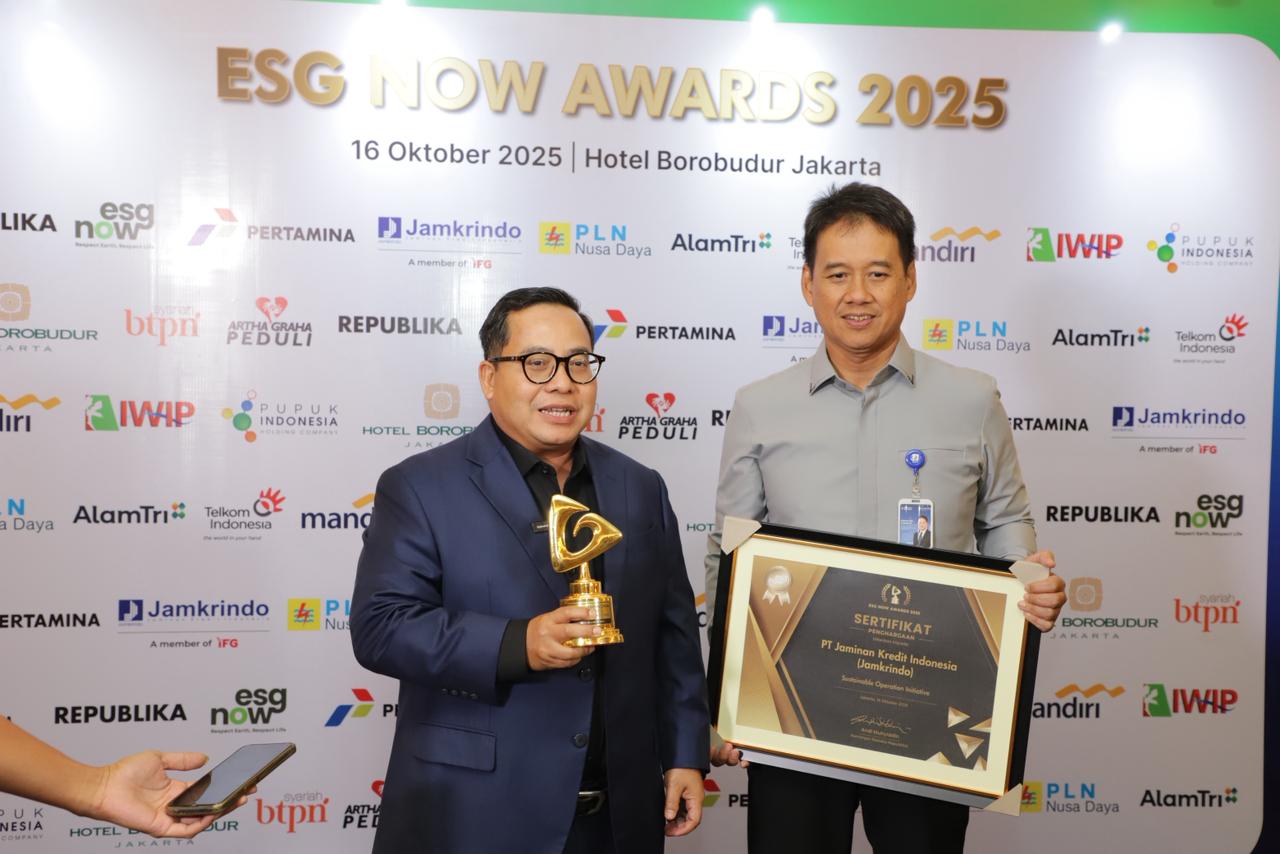 PALANGKA NEWS. CO. ID, SAMPIT — PT Jaminan Kredit Indonesia atau Jamkrindo meraih penghargaan kategori Sustainable Operation Initiative pada ajang ESG Now yang diselenggarakan oleh Republika.