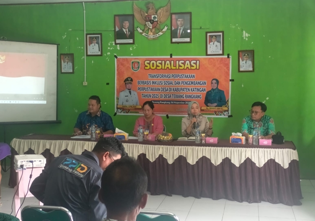 PALANGKA-NEWS.CO.ID, KASONGAN – Bunda Literasi Kabupaten Katingan, Sumiati Saiful, menghadiri kegiatan Sosialisasi Transformasi Perpustakaan Berbasis Inklusi Sosial dan Pengembangan Perpustakaan Desa di Desa Tewang Rangkang, Kamis (6/11/2025).
