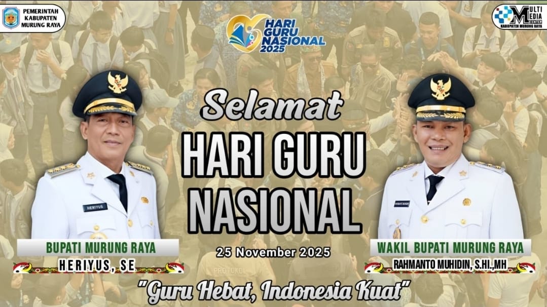 “Selamat Hari Guru Nasional 2025. Semoga seluruh guru tetap kuat, terus berkarya, dan menjadi inspirasi bagi generasi muda. Guru hebat adalah fondasi kuat bagi masa depan Murung Raya,” ujar Bupati dan Wakil Bupati secara bersamaan dalam pesannya.