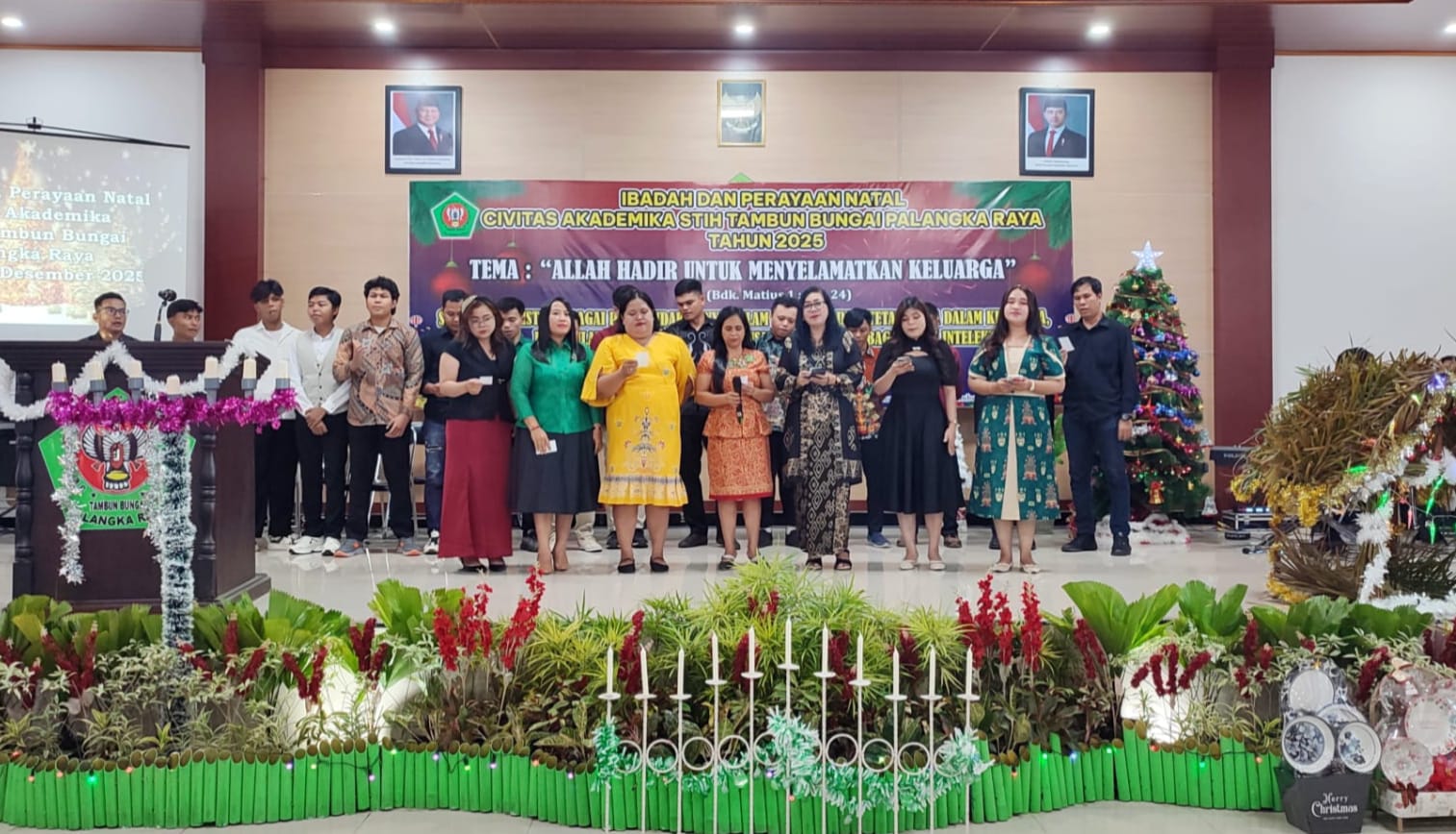 PALANGKA-NEWS.CO.ID, PALANGKA RAYA — Sekolah Tinggi Ilmu Hukum (STIH) Tambun Bungai menegaskan komitmennya terhadap kerukunan dan nilai kebangsaan melalui penyelenggaraan Ibadah dan Perayaan Natal, acara ini dihadiri oleh seluruh Civitas Akademika STIH dan perwakilan tokoh agama, yang digelar di Aula STIH – TB Palangka Raya, Sabtu (13/12/2025).