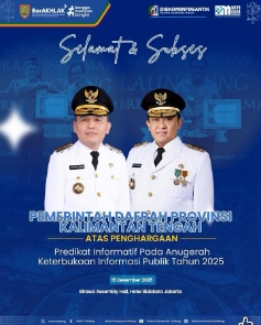 PALANGKA-NEWS.CO.ID, PALANGKA RAYA – Pemerintah Provinsi Kalimantan Tengah (Pemprov Kalteng) kembali menorehkan prestasi di tingkat nasional dengan meraih Penghargaan Anugerah Informasi Publik 2025. Penghargaan ini diberikan sebagai bentuk pengakuan atas komitmen dan konsistensi Pemprov Kalteng dalam mewujudkan keterbukaan informasi publik yang transparan, akuntabel, dan berorientasi pada pelayanan masyarakat. 15/12/2025.
