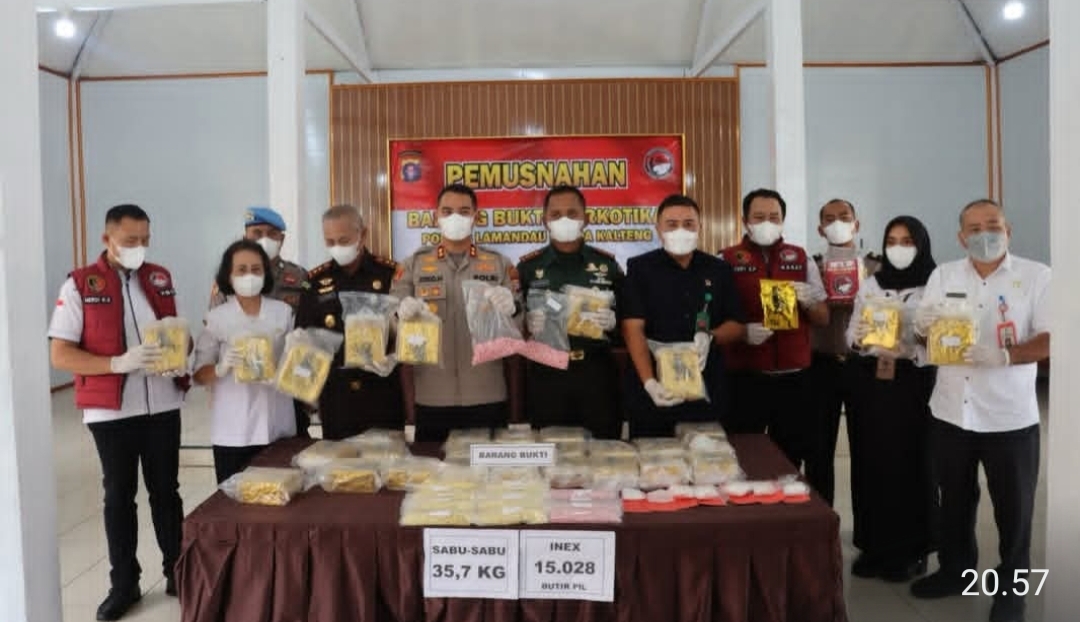 Dalam kegiatan tersebut, aparat memusnahkan barang bukti berupa: sabu seberat 35.734,66 gram (± 35,7 kilogram) dan 15.028 butir pil ekstasi