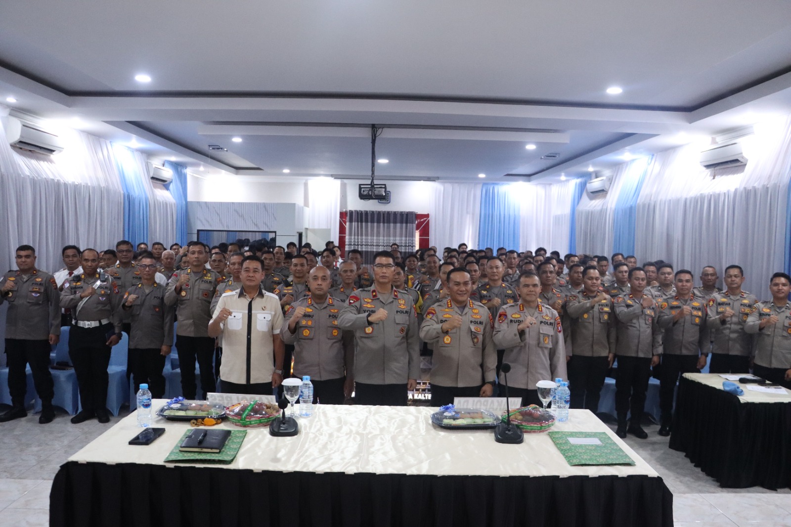 Turut hadir dalam rombongan Wakapolda antara lain Dirresnarkoba Polda Kalteng Kombes Pol Slamet Adi Purnomo, S.I.K., S.H., M.H., Dirpolairud Polda Kalteng Kombes Pol Dony Eka Putra, S.I.K., M.H., Kabidpropam Polda Kalteng Kombes Pol Rudi Asriman, S.I.K., M.Si., serta Ps. Sespripim Polda Kalteng AKP Fadhly, S.Tr.K., S.I.K., M.H.. Kegiatan ini juga dihadiri langsung oleh Kapolres Barito Utara Singgih Febiyanto, para pejabat utama, Kapolsek jajaran, Bhabinkamtibmas, dan seluruh personel.