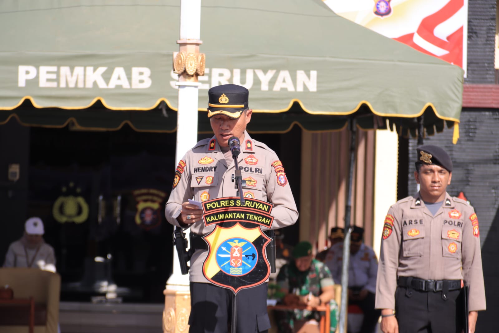 MENTAYAPOS.CO.ID, Kuala Pembuang – Bertempat di Halaman Mako Polres Seruyan, Jumat 17 April 2026 pagi, Polres Seruyan melaksanakan Apel Gelar Pasukan dan Sarpras dalam rangka Kesiapan Penanggulangan Bencana Alam Kebakaran Hutan dan Lahan (Karhutla) serta antisipasi Fenomena El Nino Godzilla Tahun 2026.