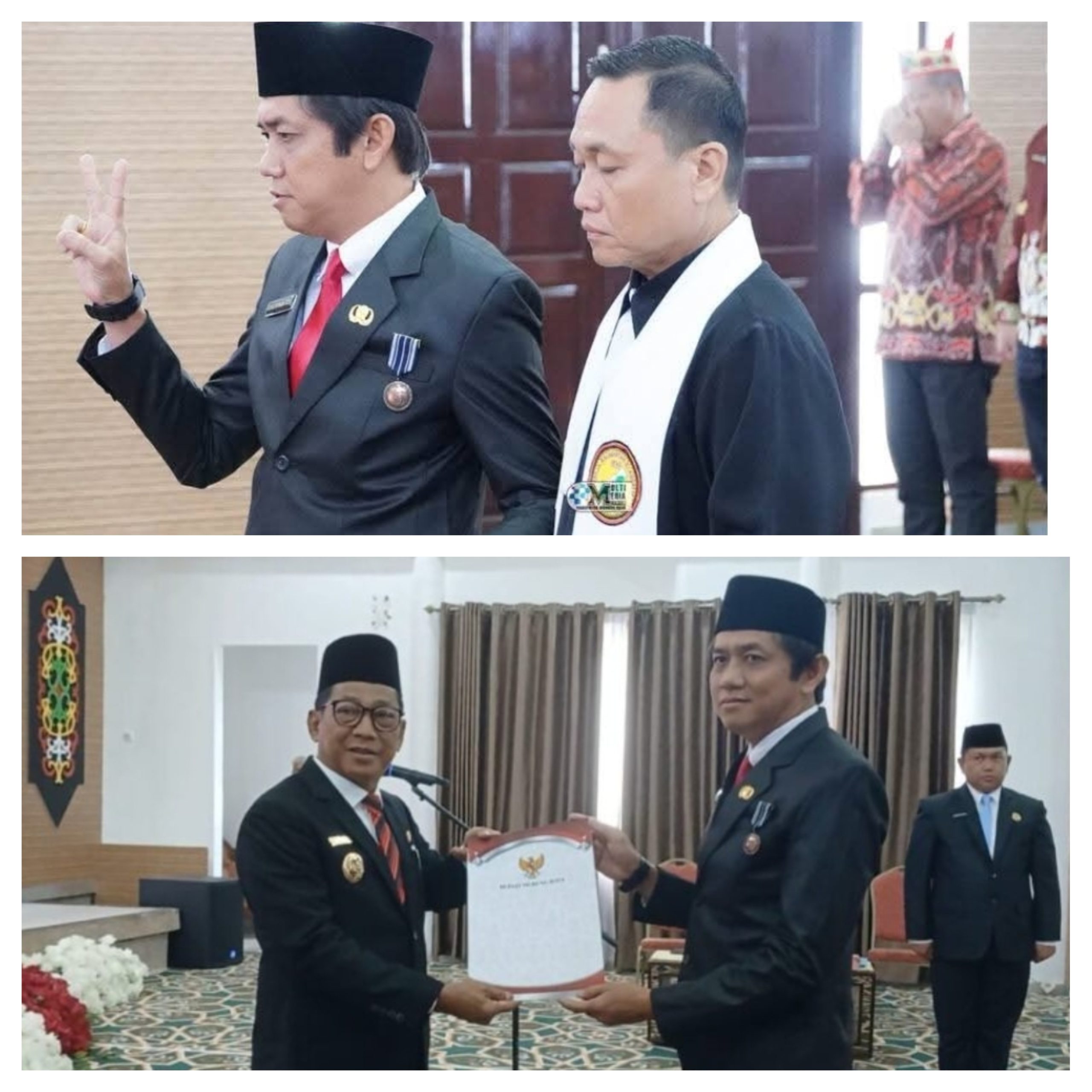 Pelantikan dan pengambilan sumpah jabatan dipimpin langsung oleh Bupati Murung Raya, Heriyus, di aula rumah jabatan (rujab) Bupati.